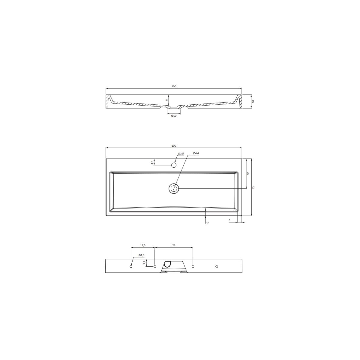 THASOS M+ | Aufsatz-/Hänge-Waschbecken, 100 x 42 cm