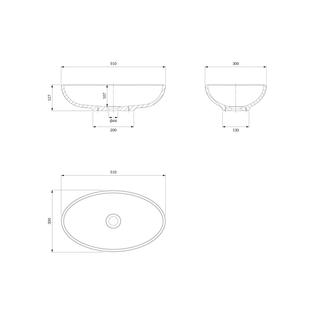 CRETE M+ | Aufsatzwaschbecken, 51 x 30 cm