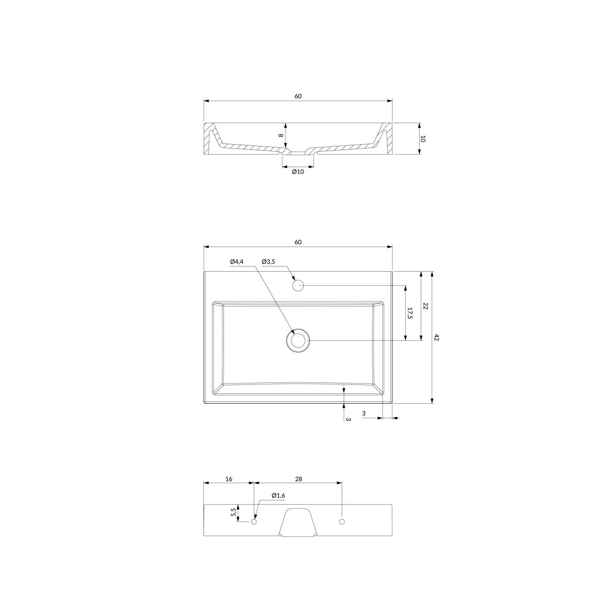 Das Waschbecken OMNIRES THASOS besticht durch sein elegantes Design mit Charakter. Die rechten Winkel und klaren Linien, die die Form bestimmen, ordnen den Raum optisch und verleihen ihm einen modernen Charakter. Das Waschbecken kann auf einer Ablagefläche aufgestellt oder direkt an der Wand aufgehängt werden.