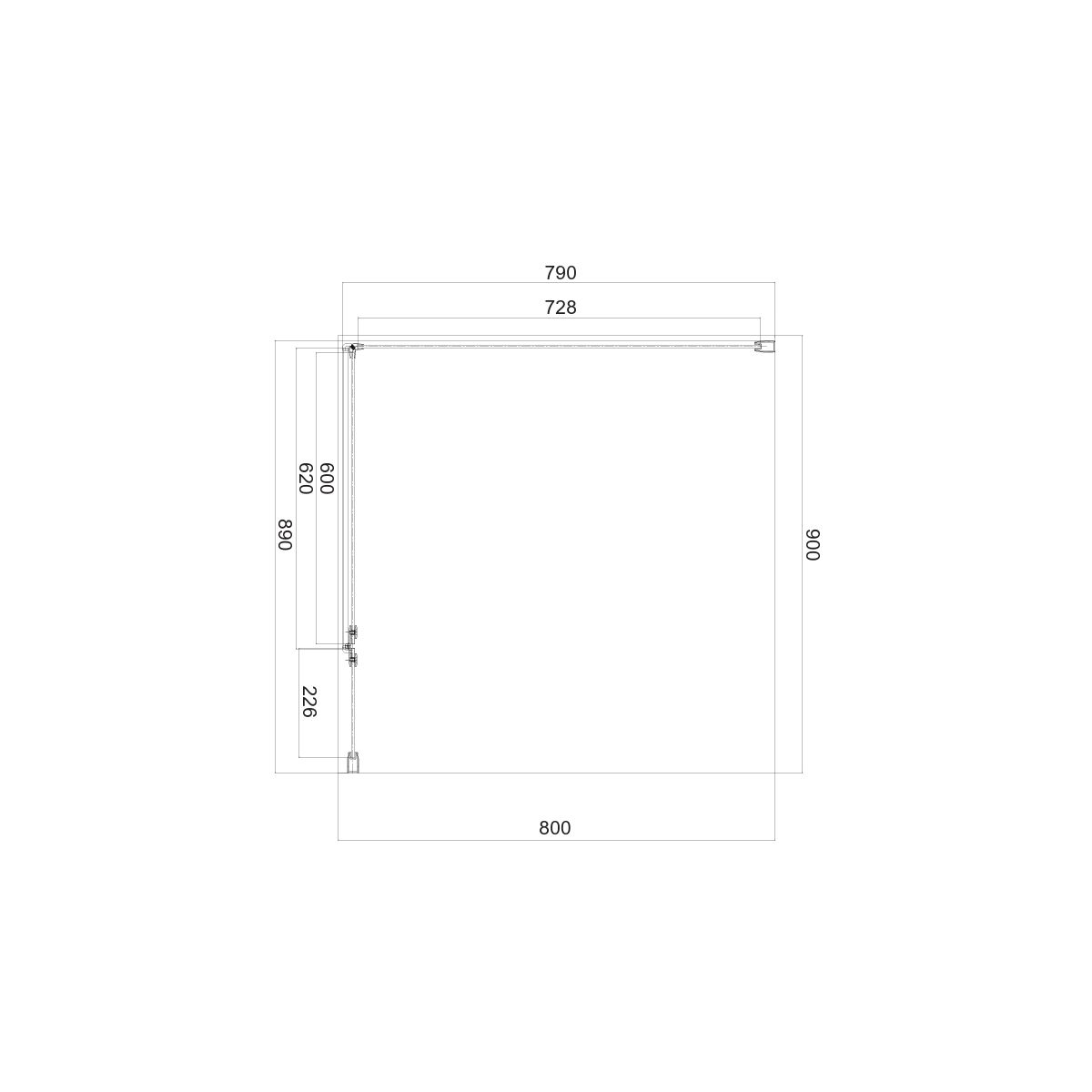 - Wand mit Tür: 90 cm