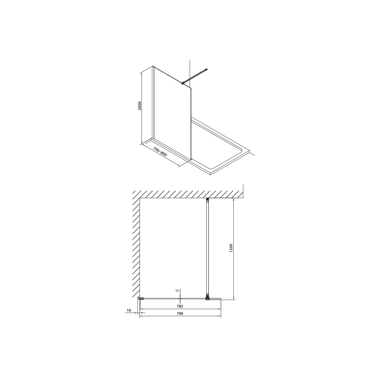 Omnires Marina Begehbare Duschwand 80 cm chrom Glanz/durchsichtiges Glas DNR80XCRTR