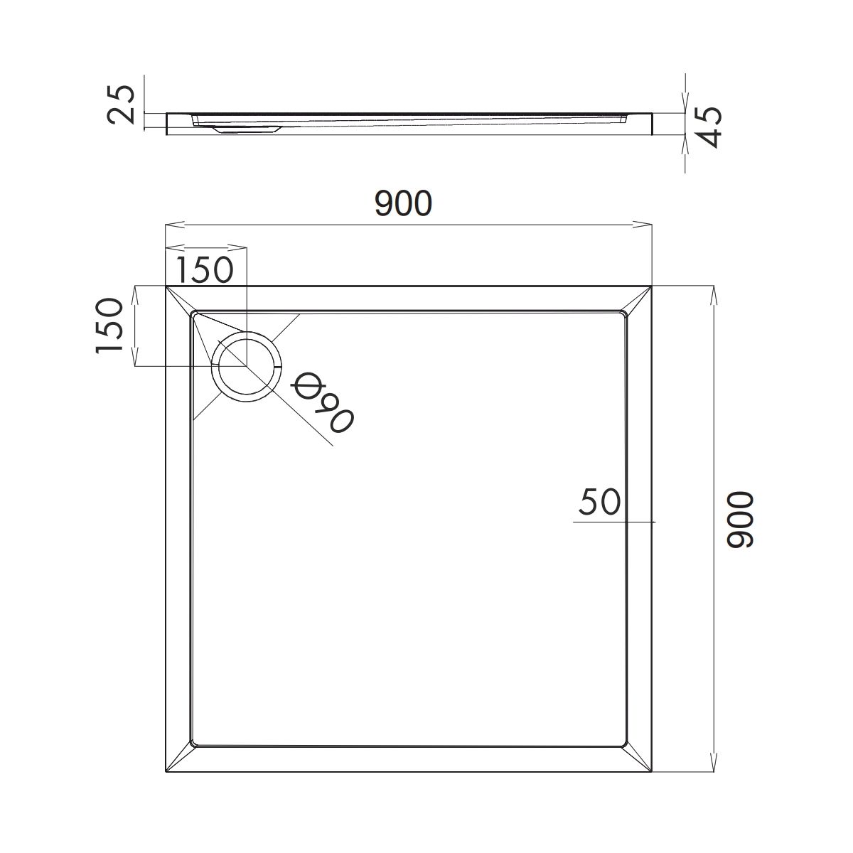 - quadratische Acryl-Duschwanne