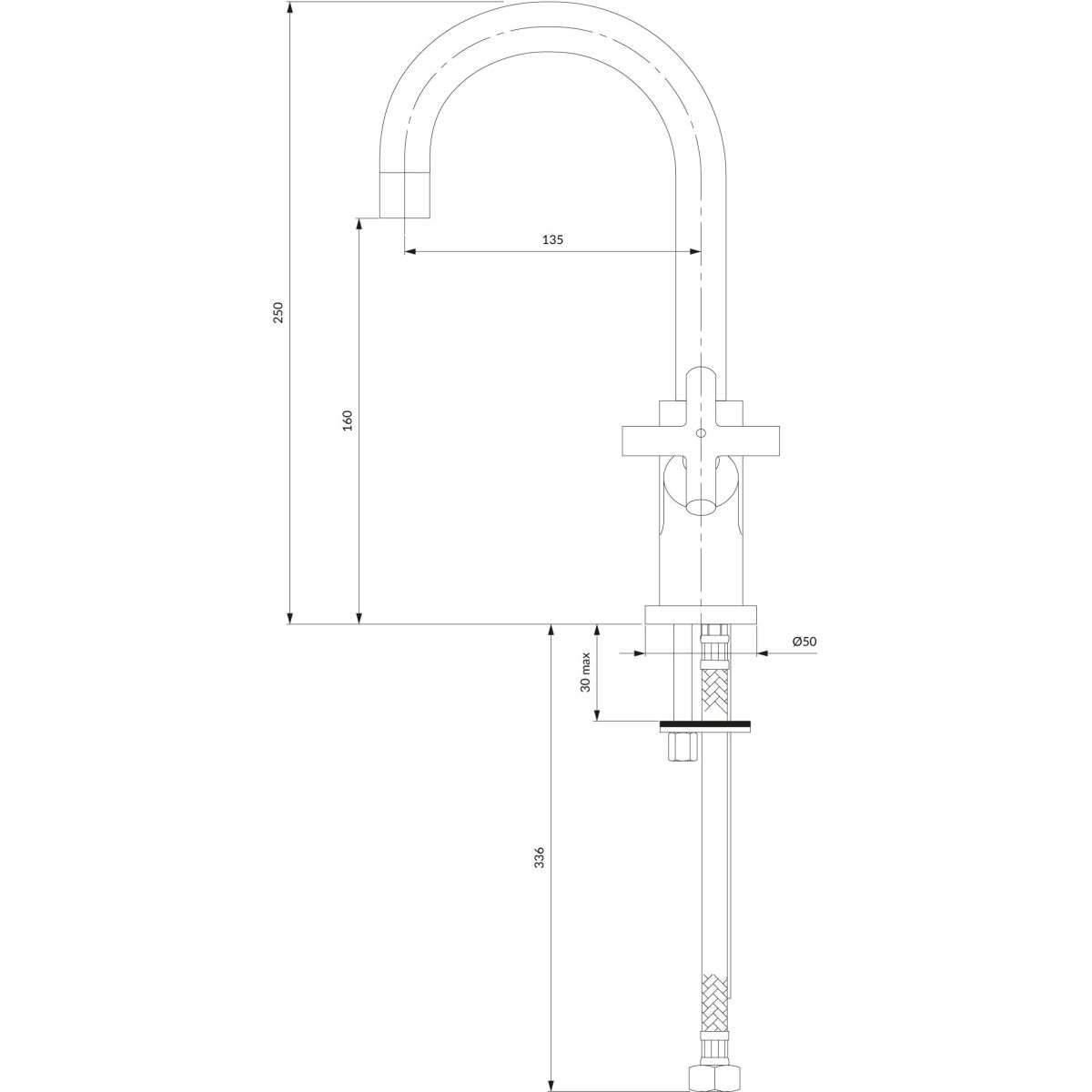 - Höhe des Wasserauslaufs: 16 cm