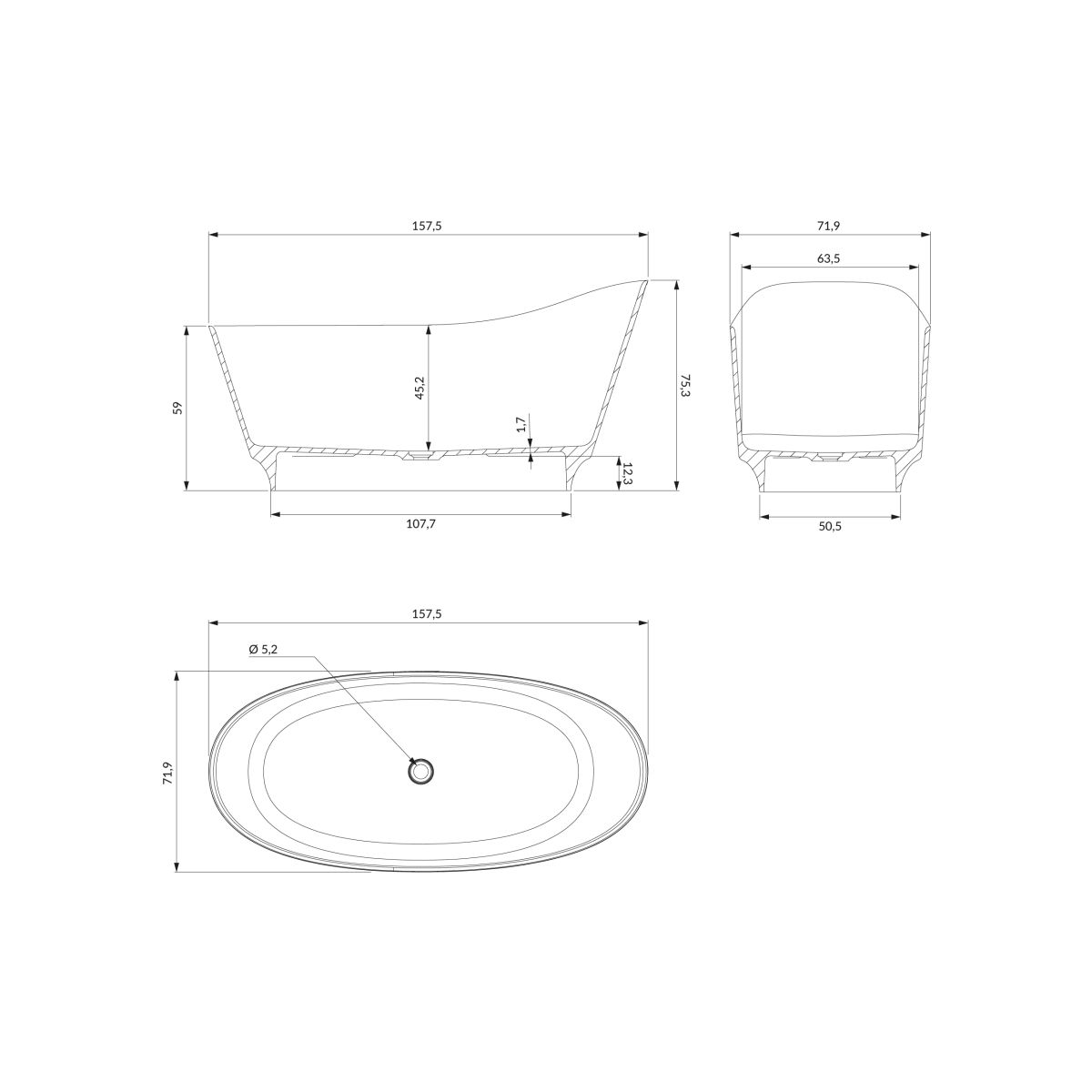 NEO M+ | freistehende Badewanne, 158 x 72 cm