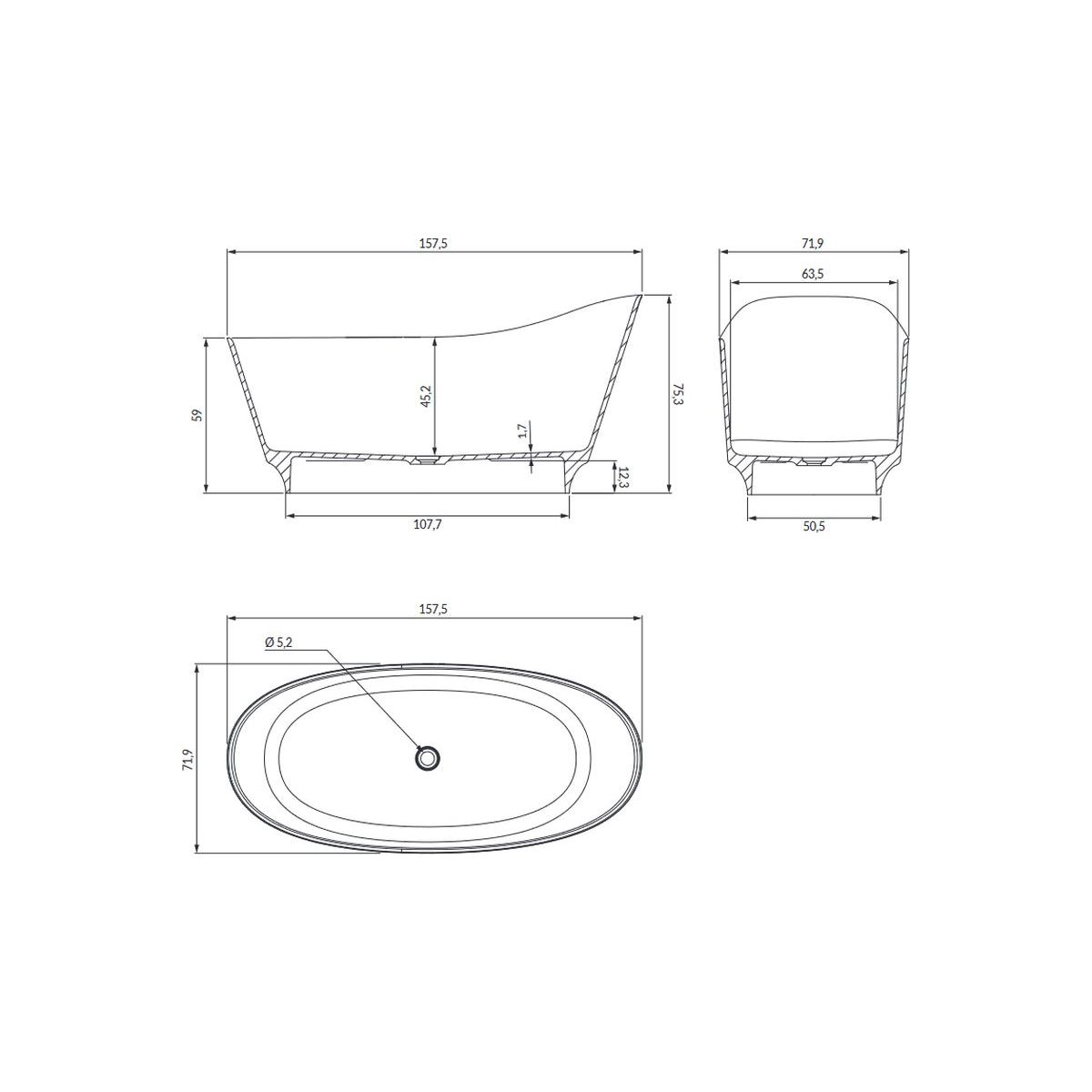 Omnires Neo M+ Freistehende Badewanne 158x72 cm oval weiß NEO158SWWBP