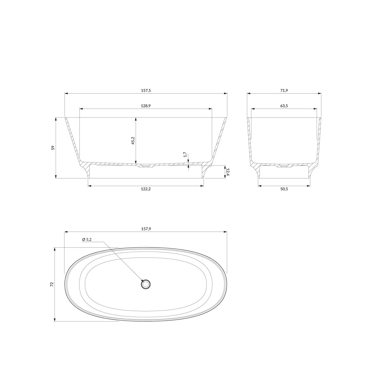 Omnires Neo M+ Freistehende Badewanne 158x72 cm oval weiß NEO158WWBP