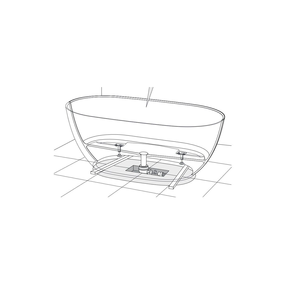 - Für die Montage muss eine Öffnung im Boden für den Einbau des Siphons geschaffen werden.