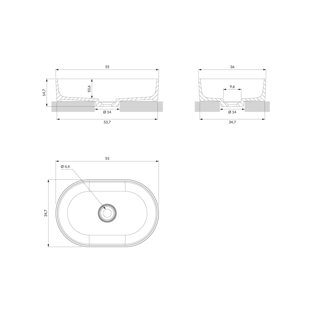 OVO M+ | Waschtischaufsatz, 55 x 36 cm