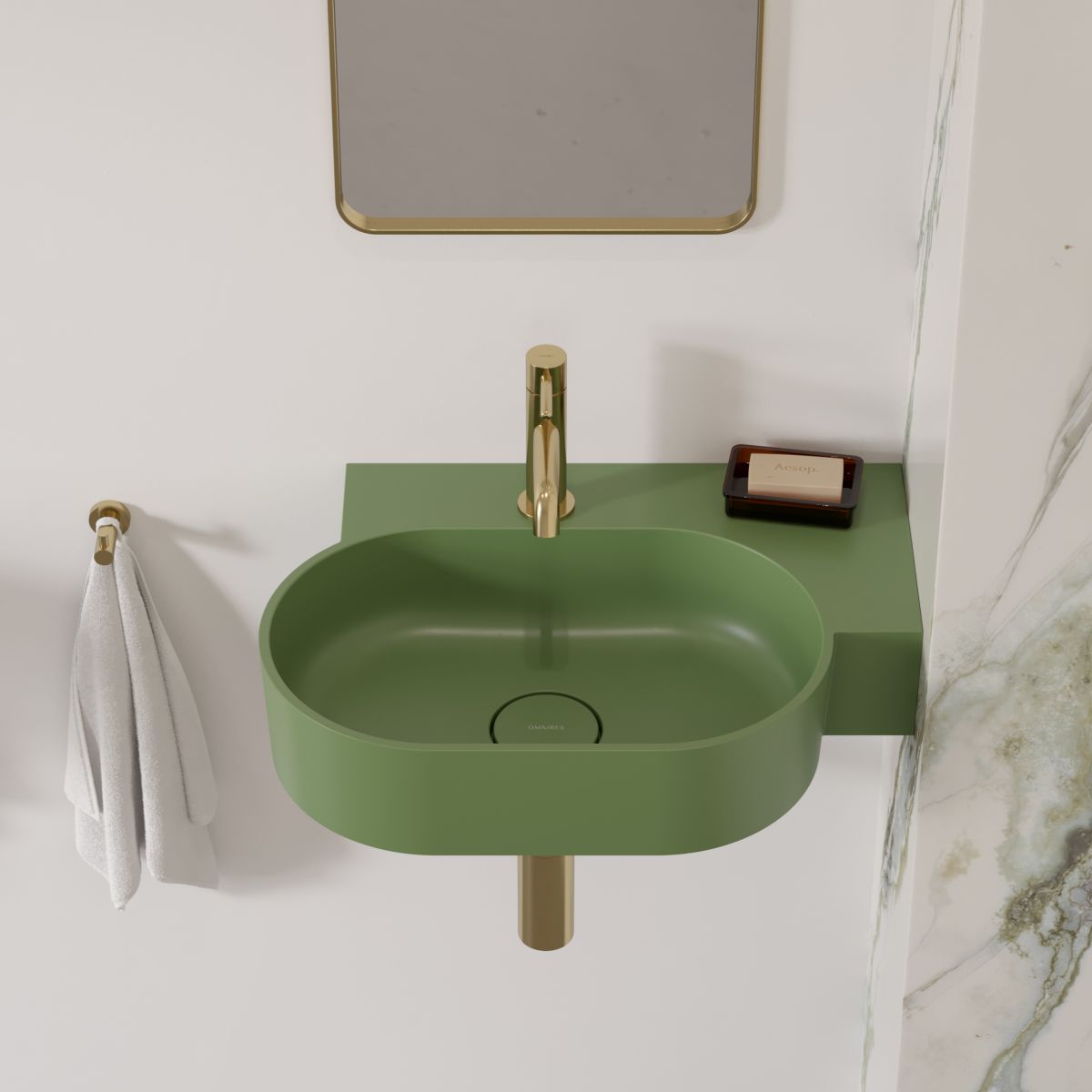 Omnires Ovo M+ Waschbecken 55x38 cm oval Aufsatzwaschbecken grün OVO555UWPOL