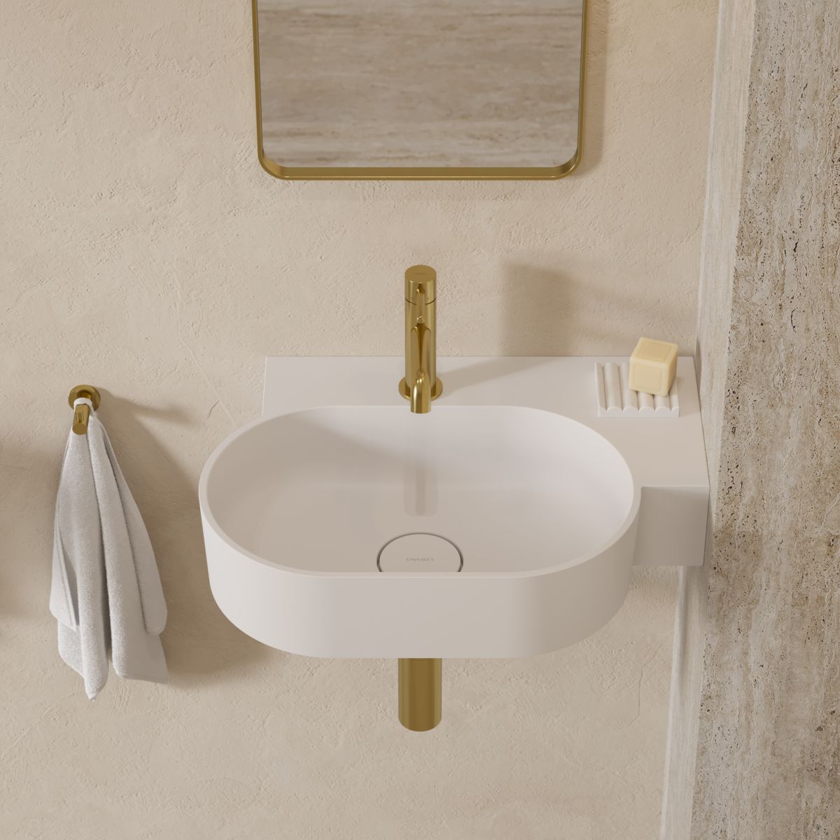 OVO M+ | Waschtischaufsatz/Wandwaschtisch – rechts, 55 x 38 cm
