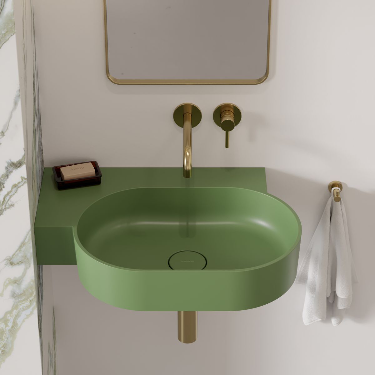 Omnires Ovo M+ Waschbecken 64x44 cm eckwaschbecken Klassisch-Aufsatzwaschbecken grün OVO645UWLOL