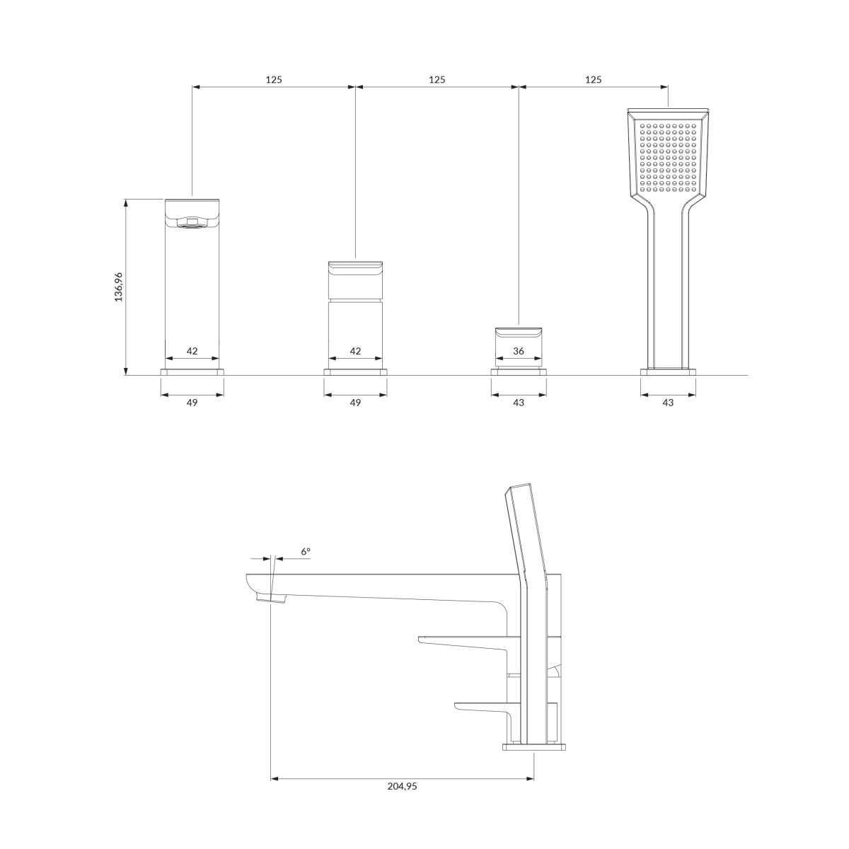 Omnires Parma Badewannen- und Duscharmatur awannenmontiert schwarz PM7432BL