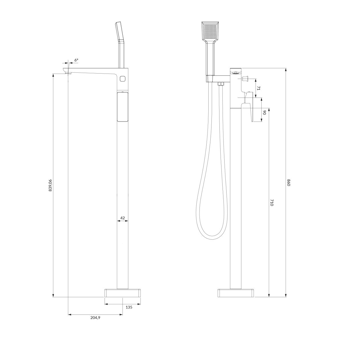 Omnires Parma Badewannen- und Duscharmatur freistehend schwarz PM7433BL