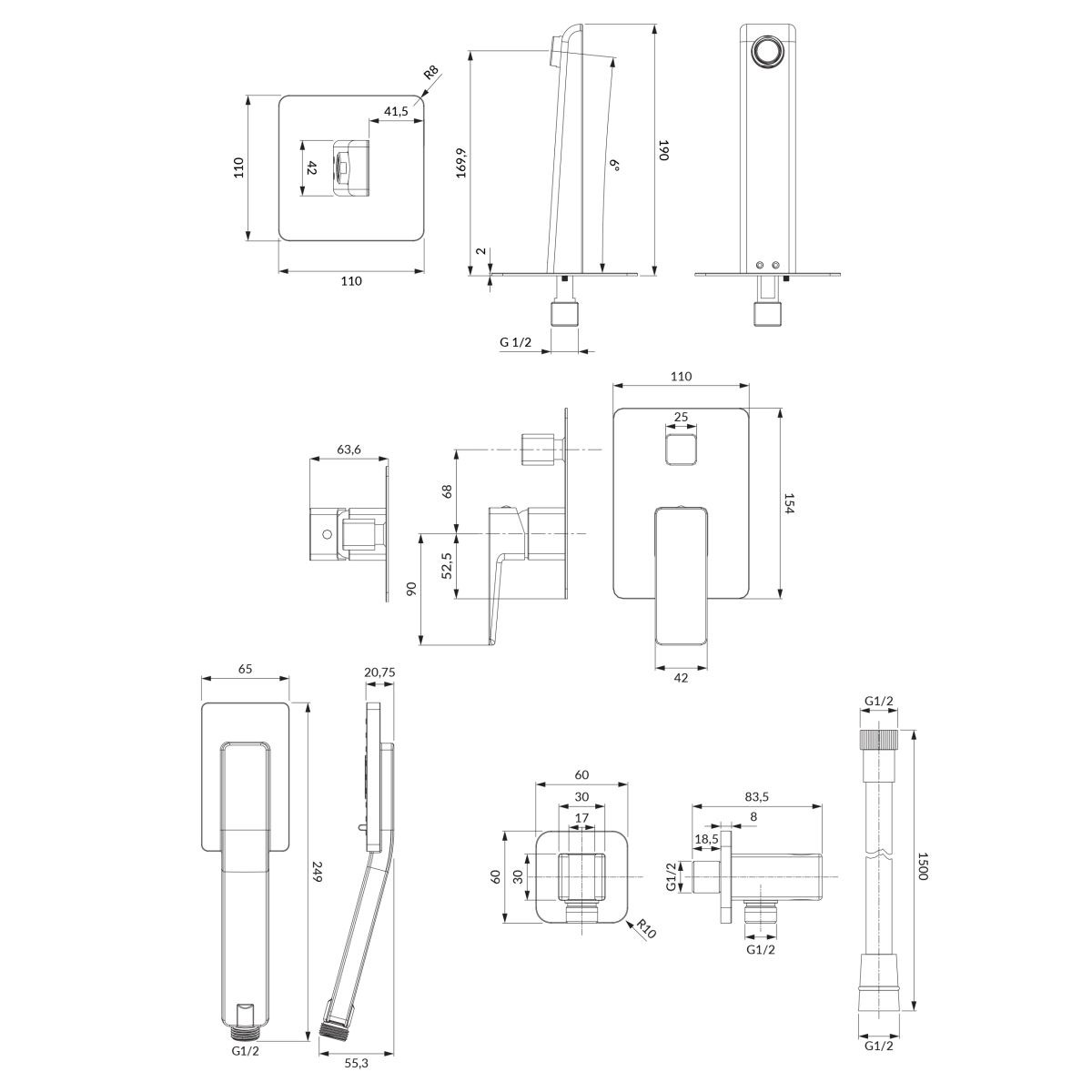 Omnires Parma Duschset Unterputz graphit SYSPMW01GR