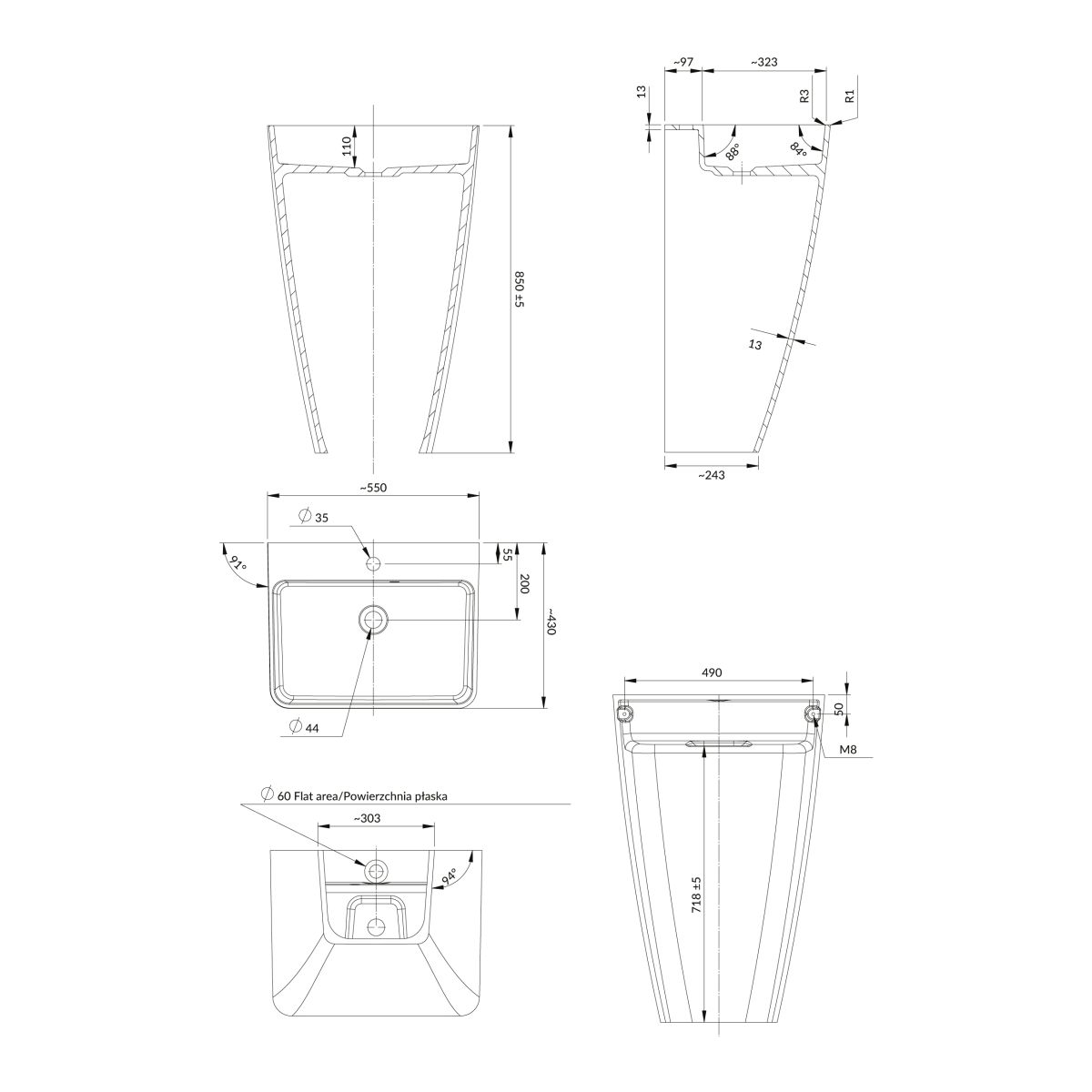 Das Waschbecken wurde aus einem Verbundwerkstoff (M+) hergestellt, dessen Hauptbestandteil Dolomitgestein ist. Die innovative Produktionstechnologie garantiert eine perfekte Verarbeitung jedes Details und sorgt gleichzeitig für außergewöhnliche Haltbarkeit und Widerstandsfähigkeit.