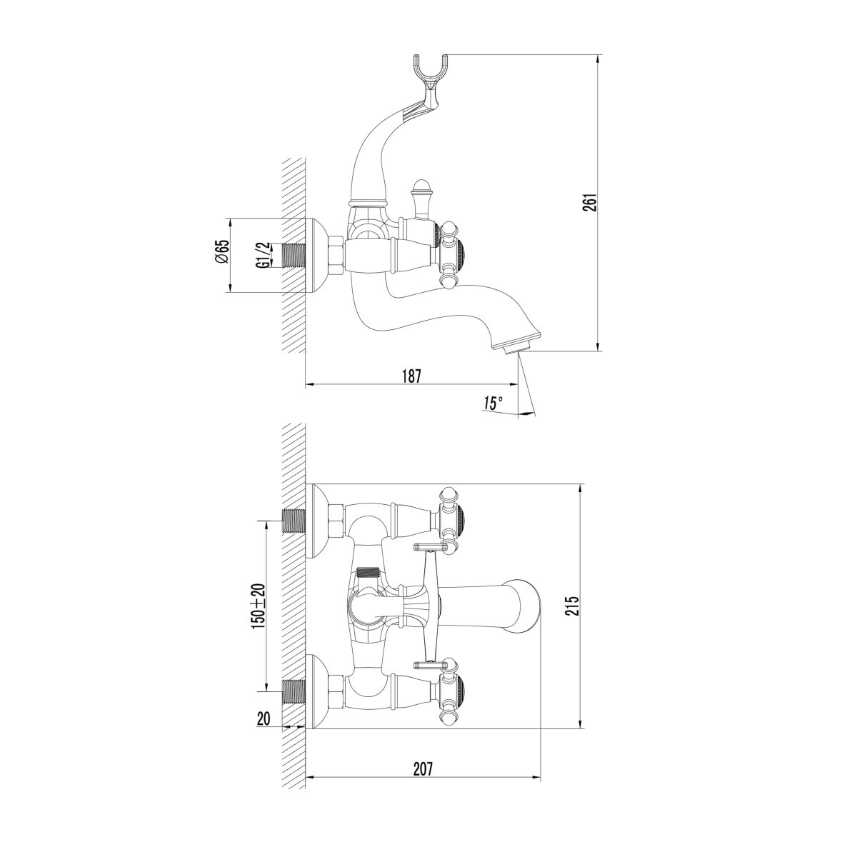 Omnires Retro Badewannen- und Duscharmatur Wandmontage || RE7231BR
