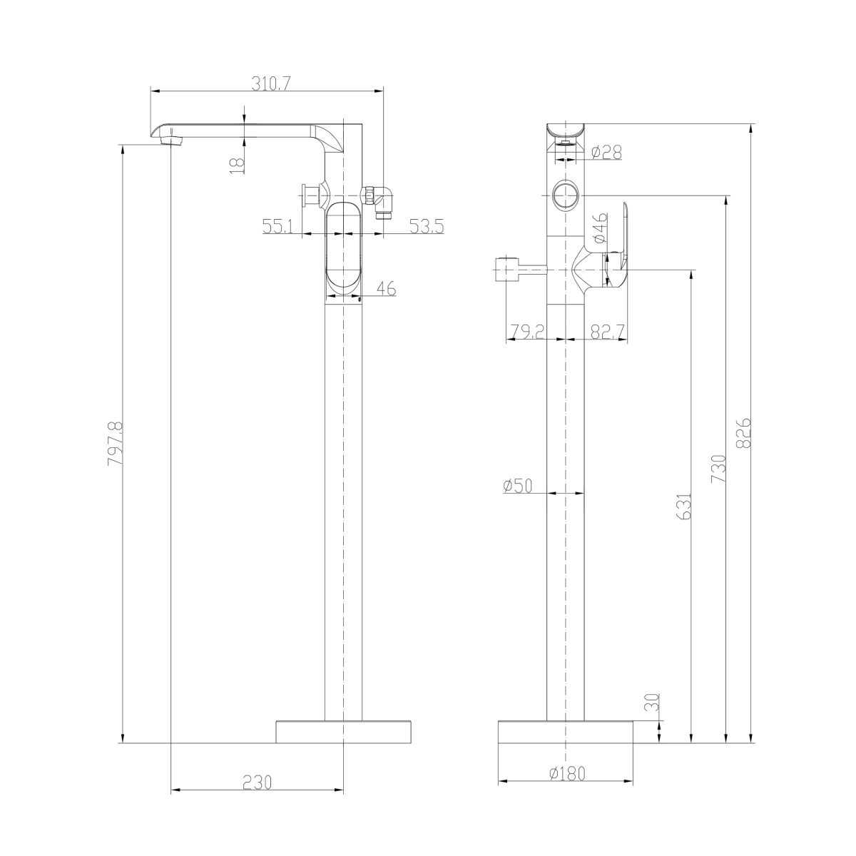 - Höhe des Wasserauslaufs: 79,8 cm