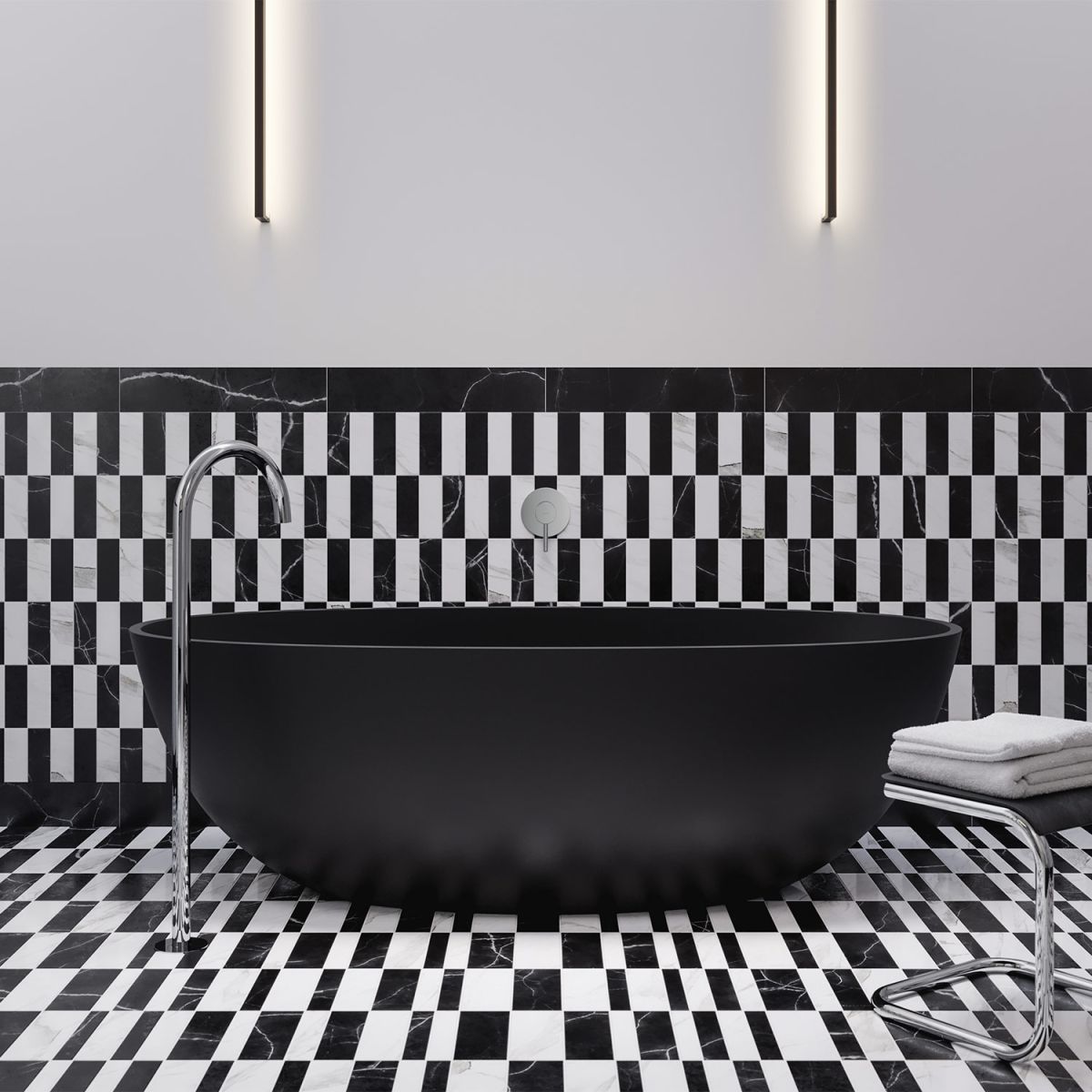 SHELL in der Farbe Black Lava ist eine Badewanne in einem ausdrucksstarken Schwarzton mit einer samtigen, matten Oberfläche.