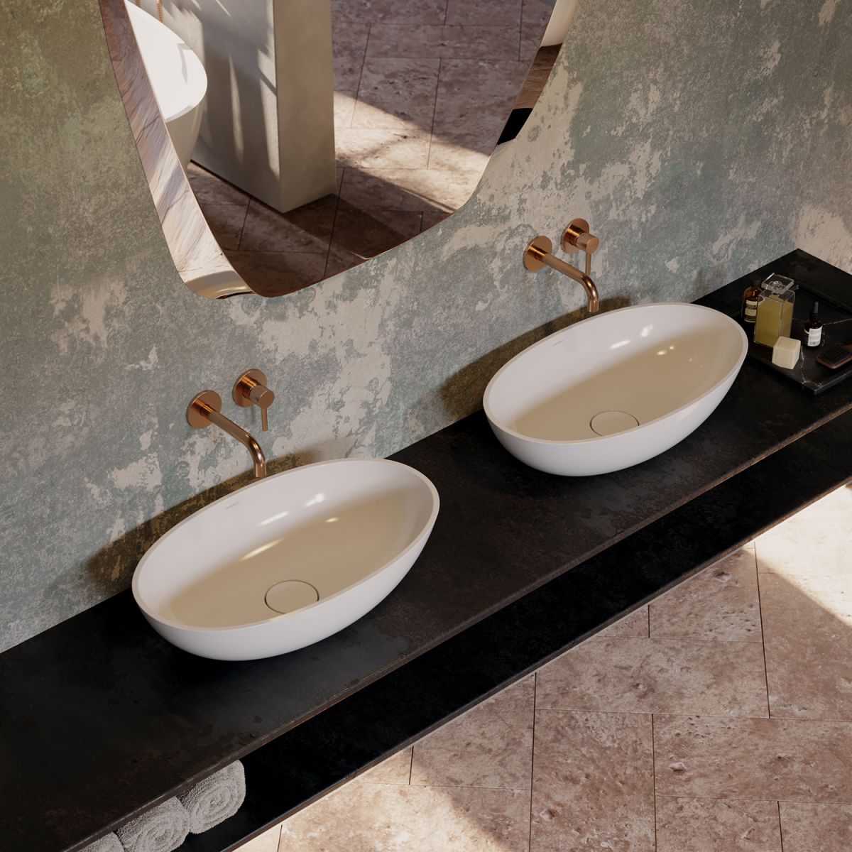 Die freistehende Badewanne aus der OMNIRES SHELL M+ Kollektion zeichnet sich durch eine moderne elliptische Form aus, die sich mit einer weichen Linie zur Basis hin verjüngt. Die minimalistische Form wirkt leicht und gleichzeitig solide und erzeugt den Effekt eines aus Fels gehauenen Monolithen. Das Innenprofil wurde so gestaltet, dass es Komfort beim Baden gewährleistet. Die Form ist mit soliden, präzise gefertigten 2 cm dicken Rändern versehen. Die Badewanne zeichnet sich durch eine niedrige Einbauhöhe aus, was den Komfort beim selbstständigen Ein- und Aussteigen oder beim Baden von Kindern erhöht. Sie verfügt über benutzerfreundliche Lösungen wie einen Siphon mit passendem Klick-Klack-Stopfen im Lieferumfang oder einen zentral angeordneten Abfluss, sodass zwei Personen bequem in der Badewanne entspannen können.