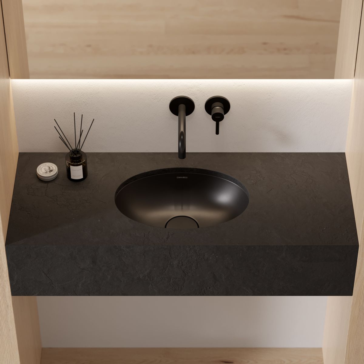 Omnires Shell M+ Waschbecken 38x25 cm oval Unterbauwaschbecken schwarz SHELL380UPBLV