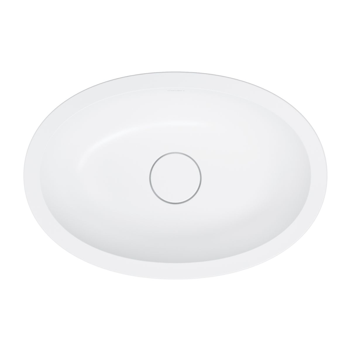 Die samtig weiche, matte Oberfläche des Waschbeckens ist in klassischem Weiß gehalten.