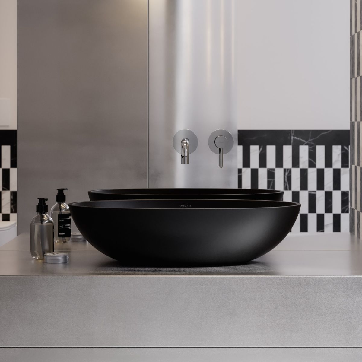 Das Aufsatzwaschbecken aus der OMNIRES SHELL M+ Kollektion zeichnet sich durch eine moderne elliptische Form aus, die sich mit einer weichen Linie zur Basis hin verjüngt. Die minimalistische Form wirkt leicht und gleichzeitig solide und erzeugt den Effekt eines aus Fels gehauenen Monolithen. Im Inneren des Waschbeckens verdeckt eine passende Abdeckung diskret den Abfluss, ohne die harmonisch geformte Silhouette zu stören.
