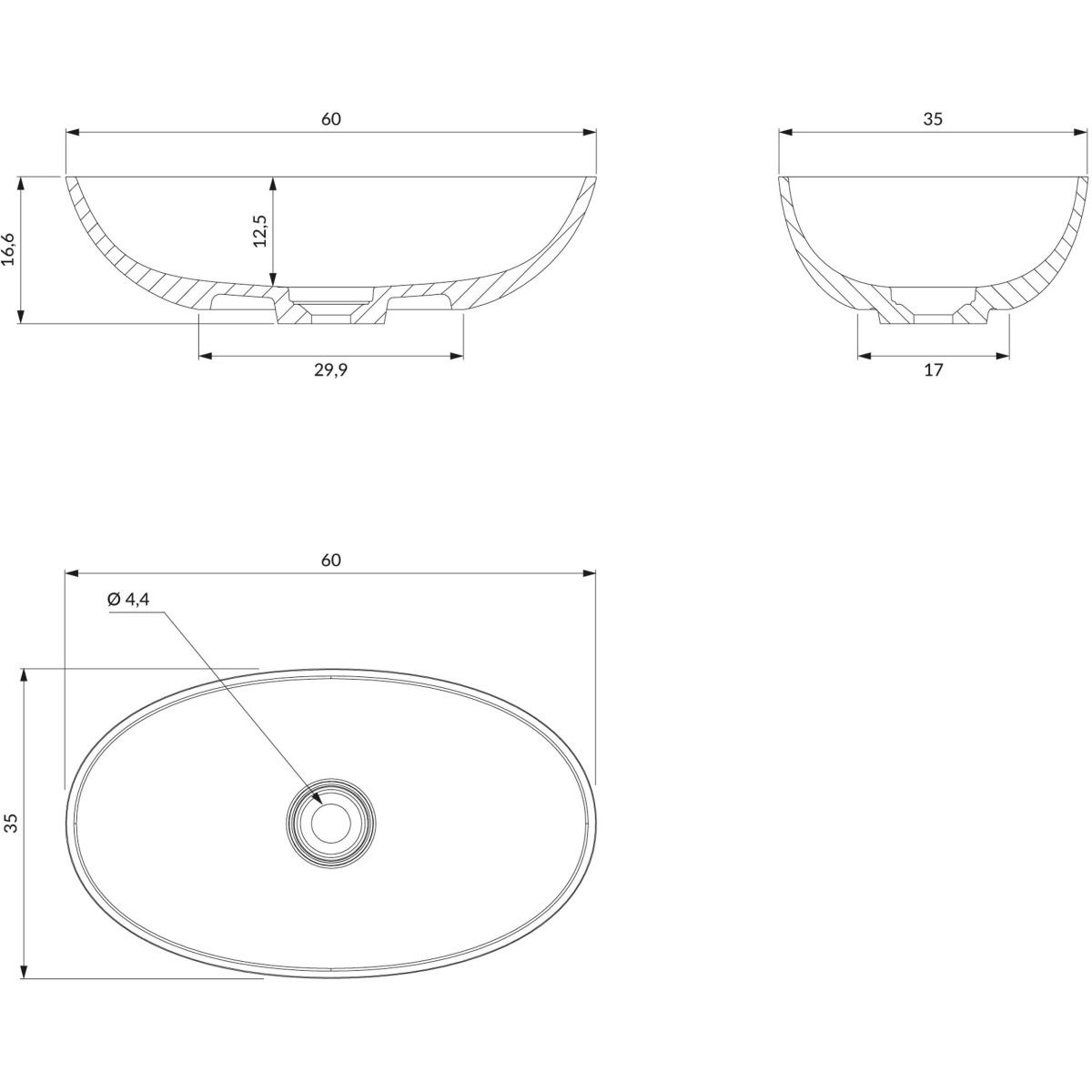 SHELL M+ Aufsatzwaschbecken, 60 x 35 cm