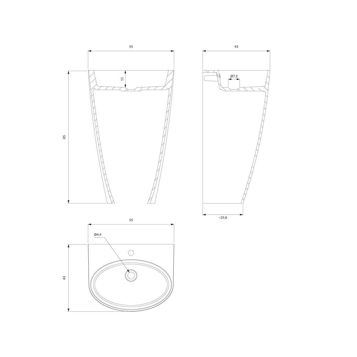 SIENA M+ | freistehendes Waschbecken, 55 x 43 cm