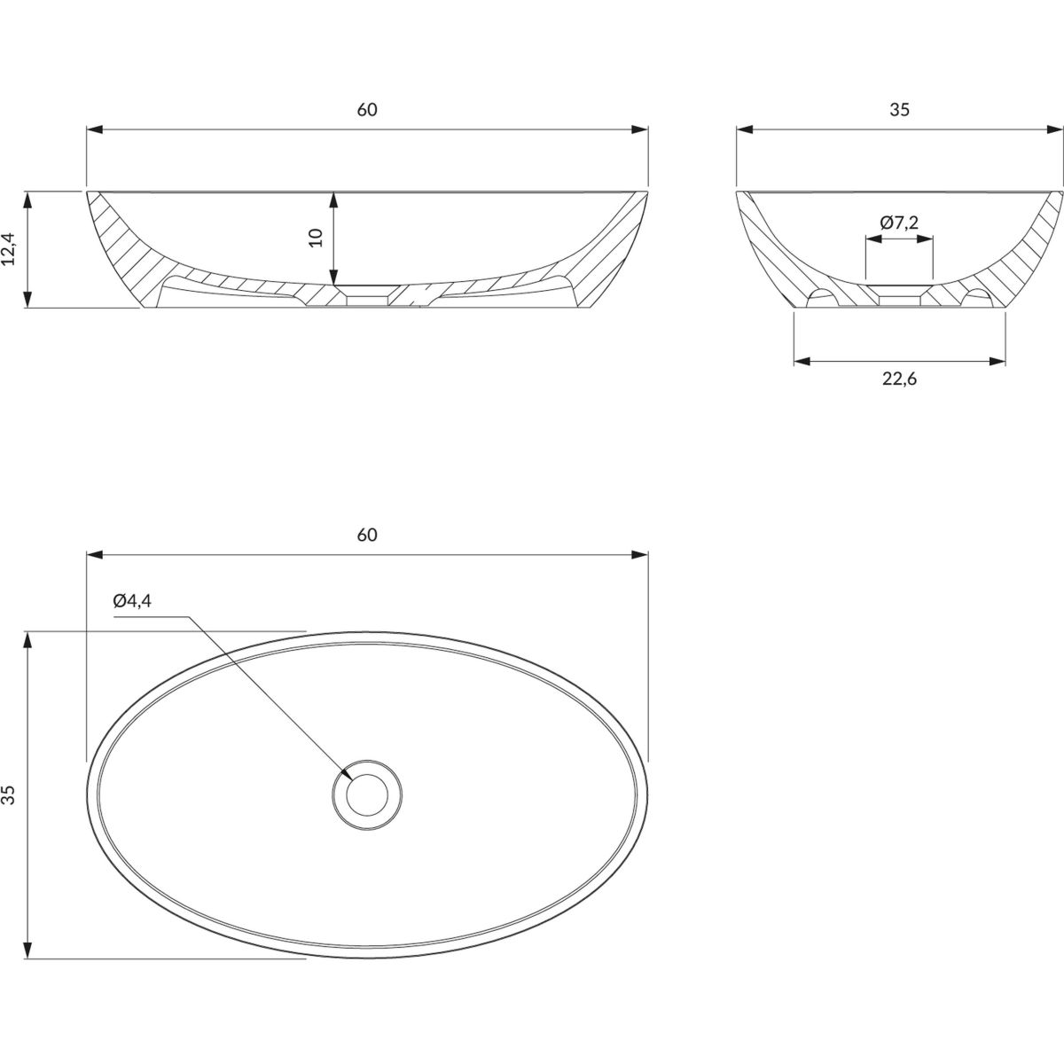 SIENA M+ | Waschtischaufsatz, 60 x 35 cm