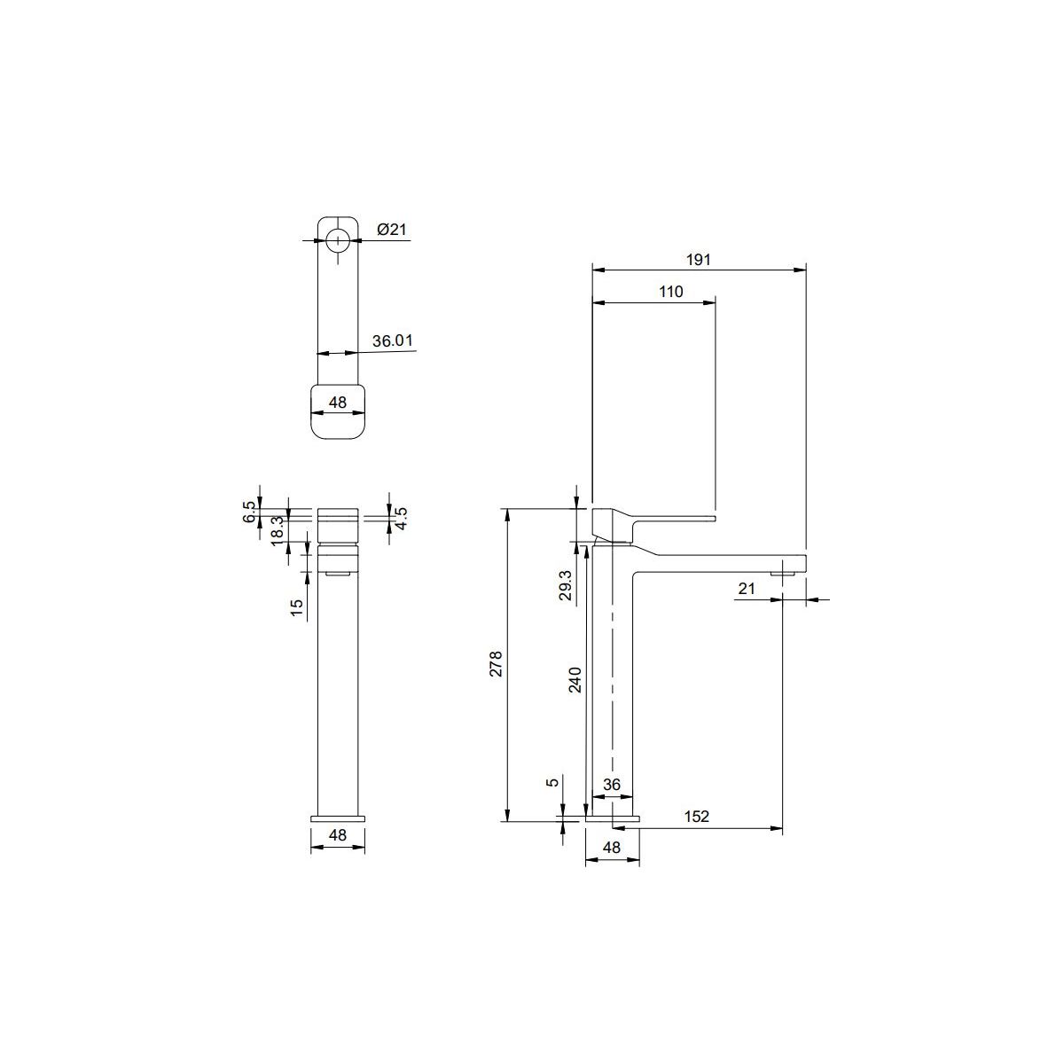 - Gesamthöhe der Armatur: 27,8 cm