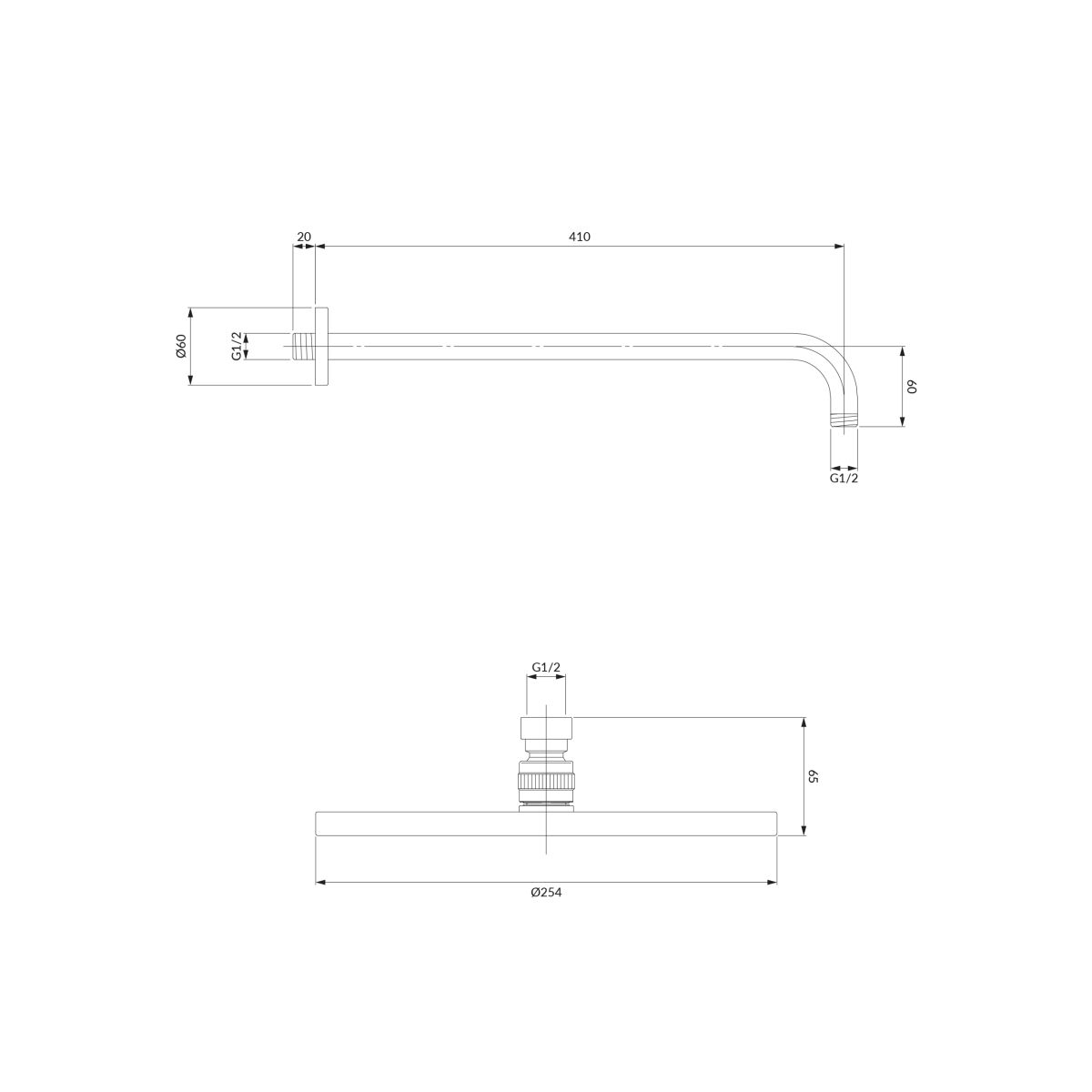 SLIMLINE | Regendusche mit Arm, ø25 cm