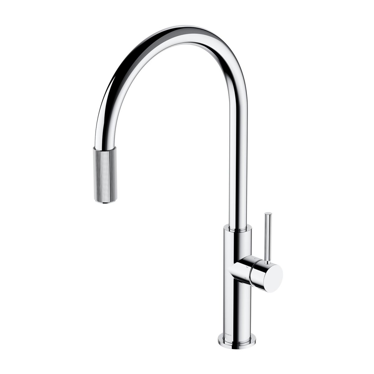 Die Küchenarmatur OMNIRES SWITCH verbindet minimalistisches, auf ausgewogenen Proportionen basierendes Design mit praktischer Funktionalität und liefert sowohl normales als auch gefiltertes Wasser. Ausdrucksstarke, präzise geriffelte Details ermöglichen eine intuitive Bedienung und zeigen zwei unabhängige Wasserentnahmestellen an: normales Wasser am Mischventil und gefiltertes Wasser am Ende des Auslaufs – drehen Sie einfach den Ring am Auslauf, um ein Glas mit einem schnellen Strahl Trinkwasser von höchster Geschmacksqualität zu füllen.