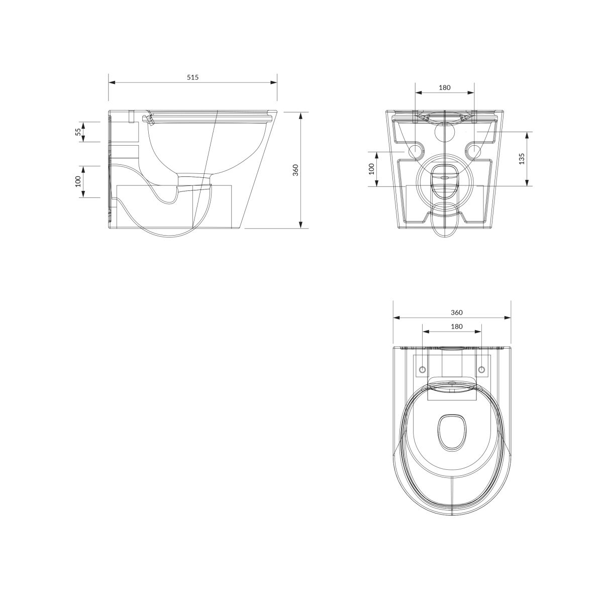 TAMPA | randlose Wand-Toilettenschüssel mit Soft-Close-Sitz, 52 x 36 cm