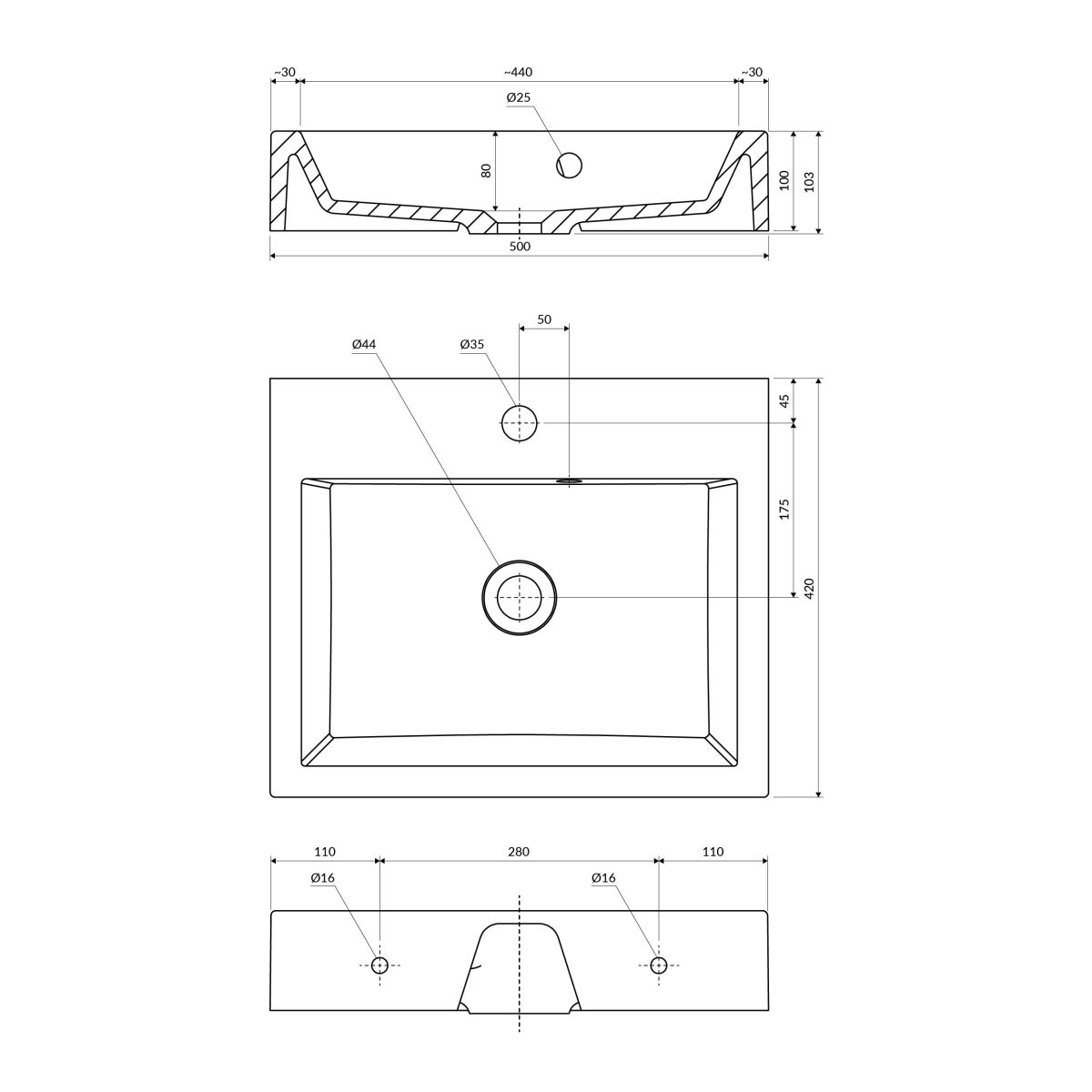 THASOS M+ | Aufsatz-/Hänge-Waschbecken mit Überlauf, 50 x 42 cm
