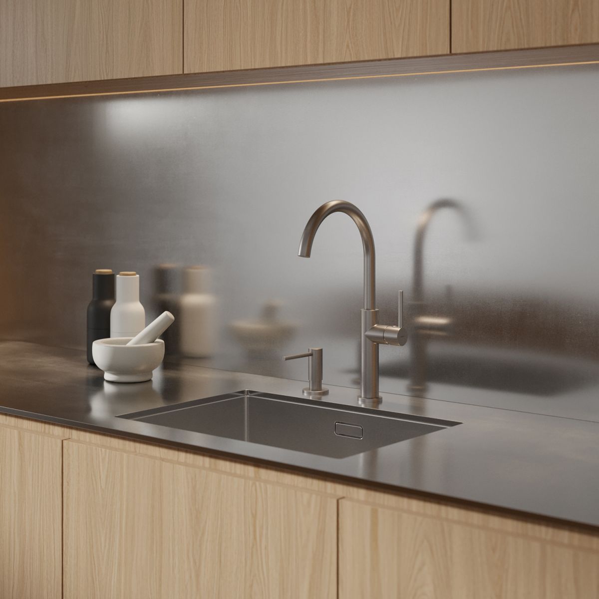 Die Küchenarmatur OMNIRES TULA zeichnet sich durch ihre moderne, elegante Form und ihre perfekten Proportionen aus. Sanfte Rundungen und markante Kanten bilden ein subtil harmonisches Design. Die Armatur ist mit einem schwenkbaren Auslauf ausgestattet, der den Bedienkomfort erhöht. Die Armatur wurde aus hochwertigem Messing gefertigt und mit einem Keramikkopf von höchster Qualität ausgestattet. Innovative technologische Lösungen ermöglichen eine Reduzierung des Wasserverbrauchs um die Hälfte und sorgen für höchsten Bedienkomfort.