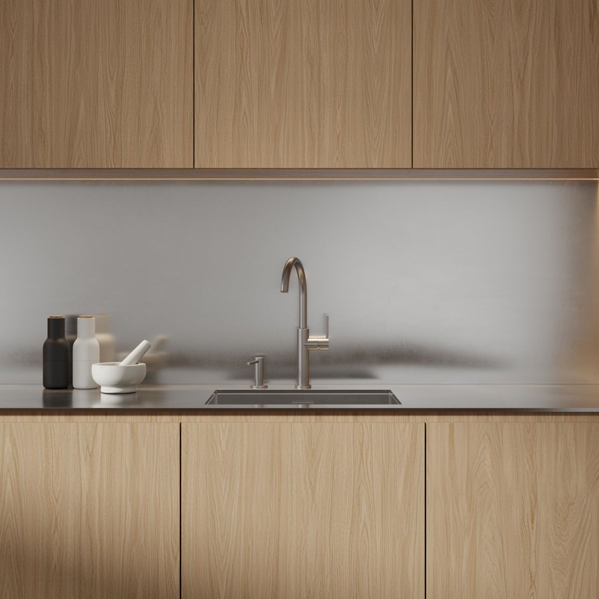 Nickel ist eine industrielle Oberfläche mit silberner Farbe und satinierter, gebürsteter Oberfläche. Die Beschichtung wurde mit fortschrittlicher PVD-Technologie hergestellt.