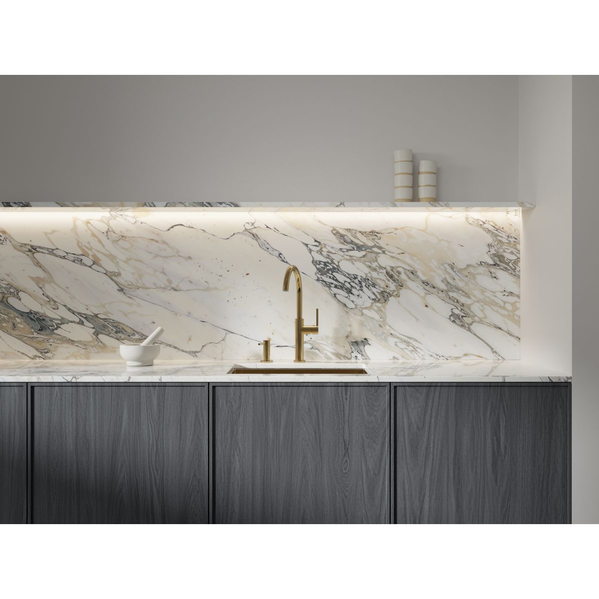 Gebürstetes Messing ist eine edle Oberfläche in einem kühlen Goldton mit einer satinierten, gebürsteten Oberfläche.
