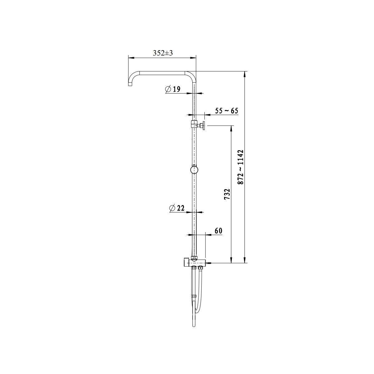 - Arm zur Montage einer Regendusche mit einer Reichweite von ca. 35 cm von der Wand