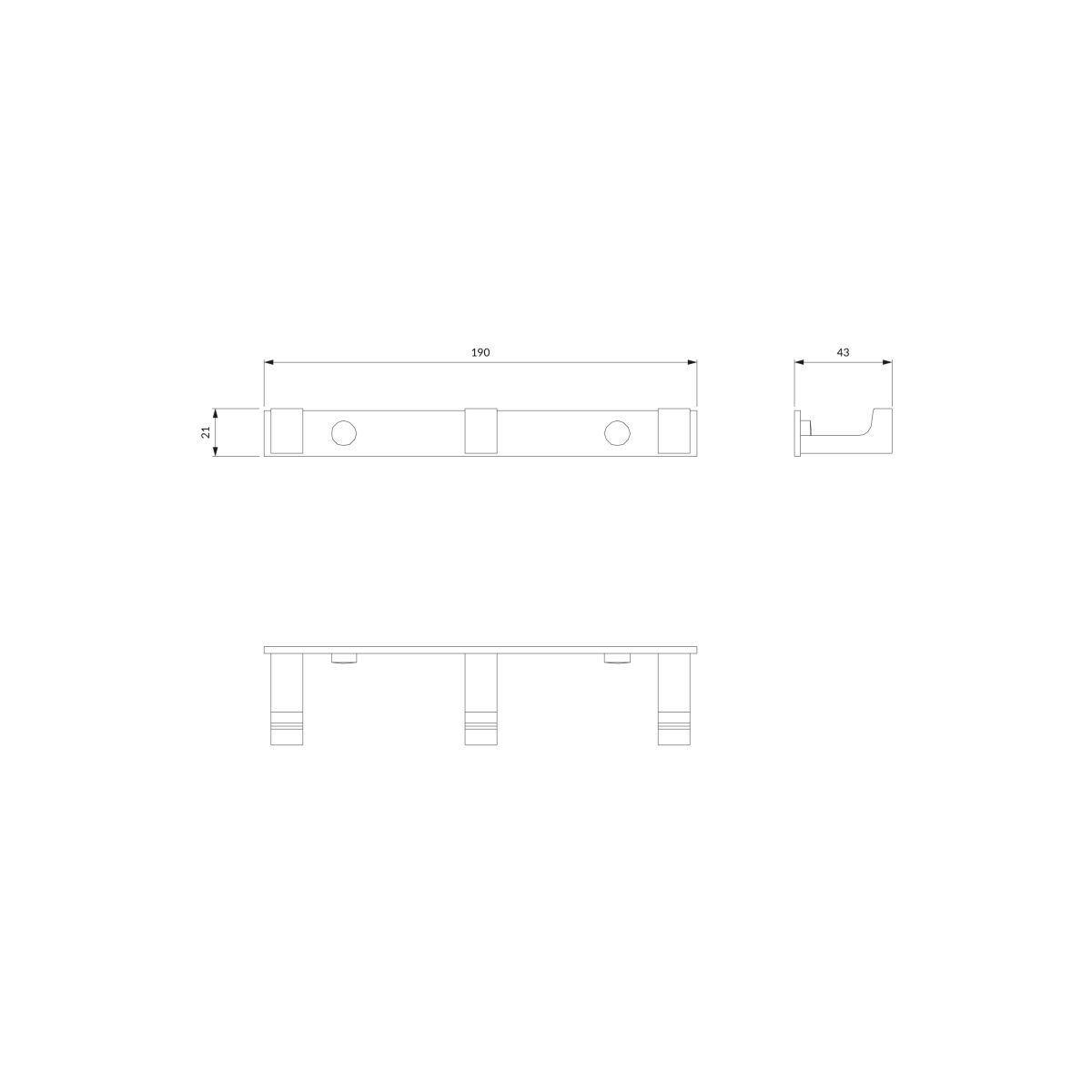 - Breite: 19 cm, Höhe: 2 cm, Abstand zur Wand: 4 cm
