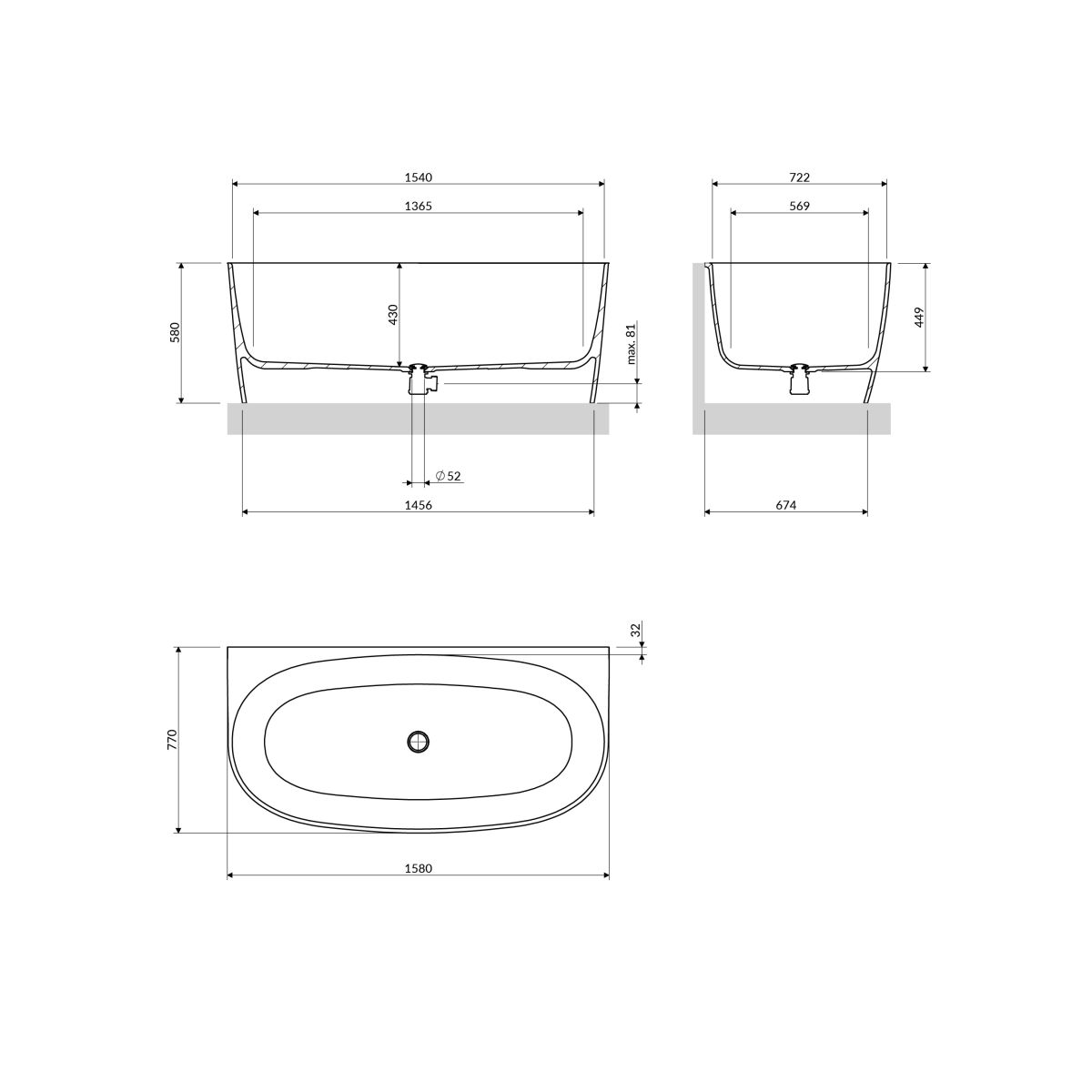 Die Badewanne OMNIRES VALENCIA verbindet elegante Leichtigkeit mit praktischer Anwendbarkeit. Die zarte Form mit regelmäßiger Silhouette und subtilen Kanten ist für die Wandmontage geeignet, wodurch der Effekt einer freistehenden Badewanne bei voller Raumnutzung erzielt wird. Bei diesem Modell befindet sich der Abfluss in der Mitte, sodass zwei Personen bequem darin entspannen können.