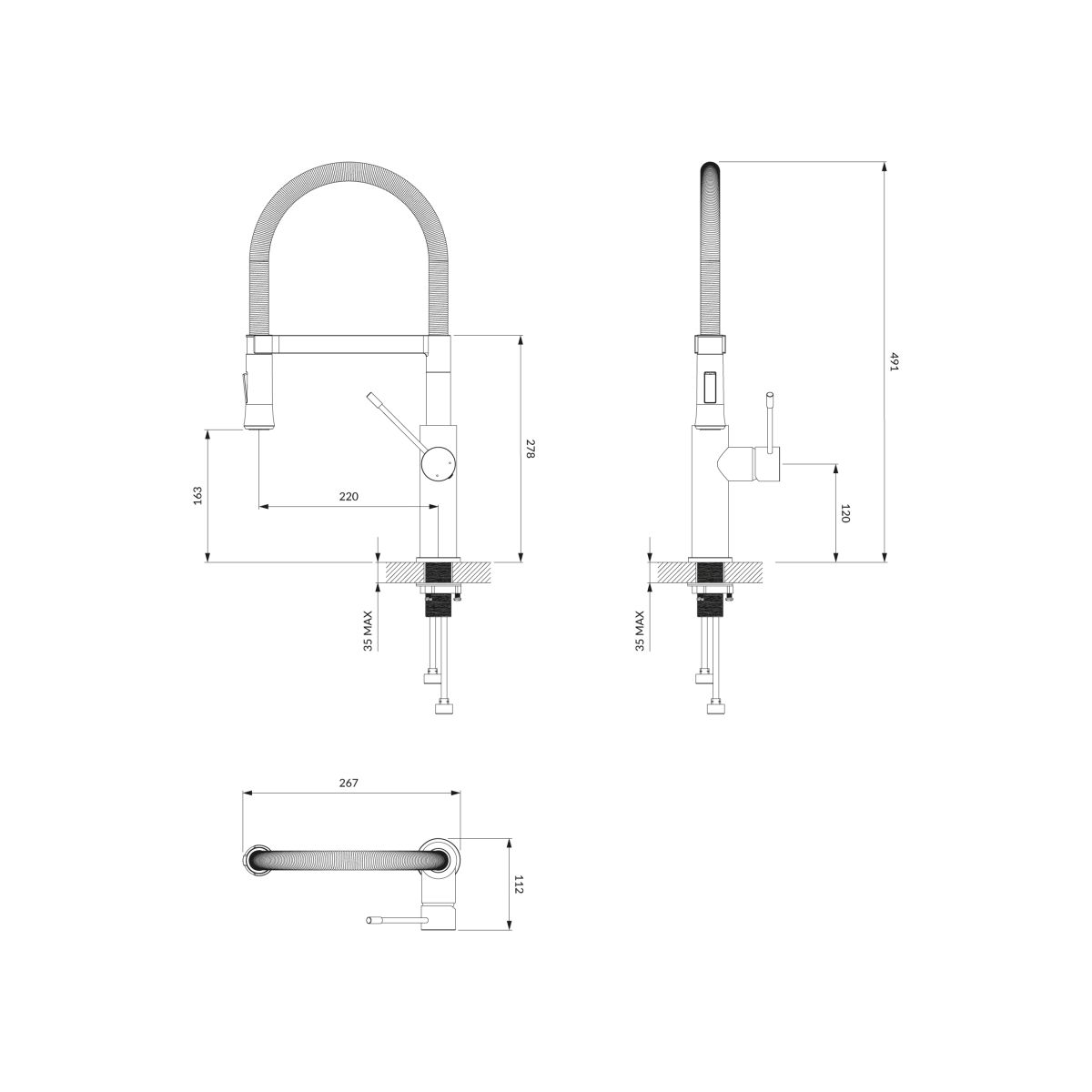 Die Küchenarmatur OMNIRES X3 vereint Zuverlässigkeit und Kraft in schlanken Formen und subtilen Details. Die überdurchschnittliche Höhe von 45 cm verbessert den Bedienkomfort, und der drehbare, abnehmbare Auslauf garantiert Flexibilität in der Reichweite. Die 2-Funktions-Brause sorgt für einen variablen Wasserstrahl, der per Knopfdruck umgeschaltet werden kann. Die Armatur wurde aus hochwertigem Messing gefertigt und mit einem Keramikkopf von höchster Qualität ausgestattet.