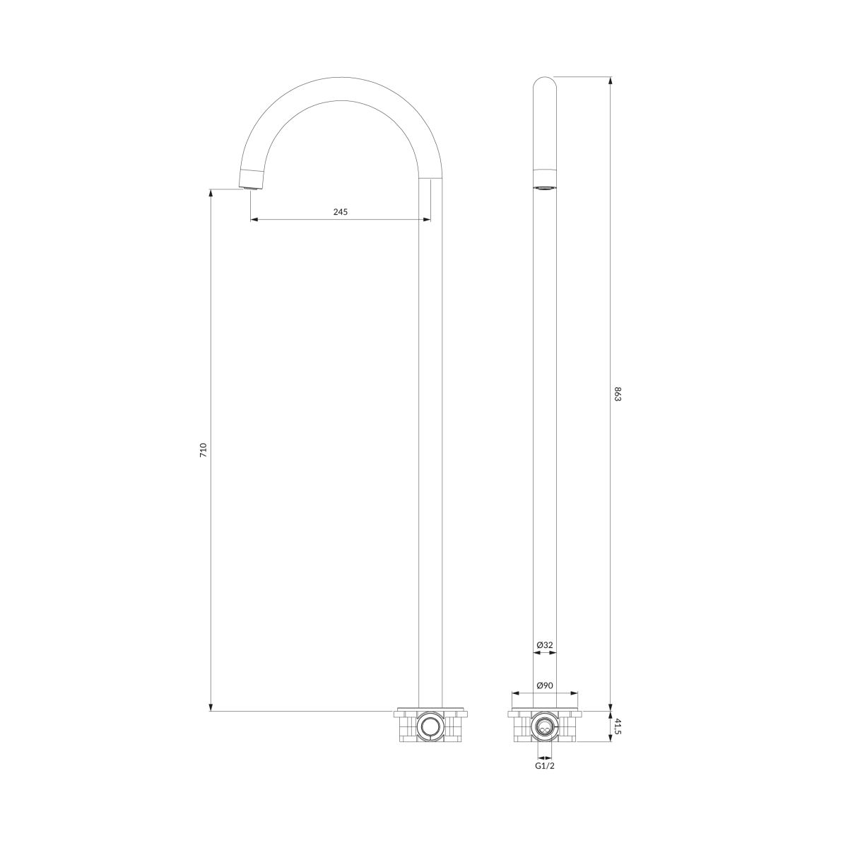 - Gesamthöhe des Auslaufs: 86,3 cm