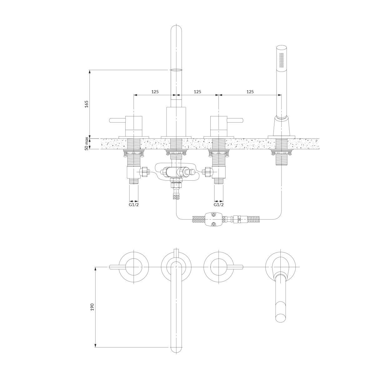 Omnires Y Badewannen- und Duscharmatur awannenmontiert schwarz Y1232BLGL