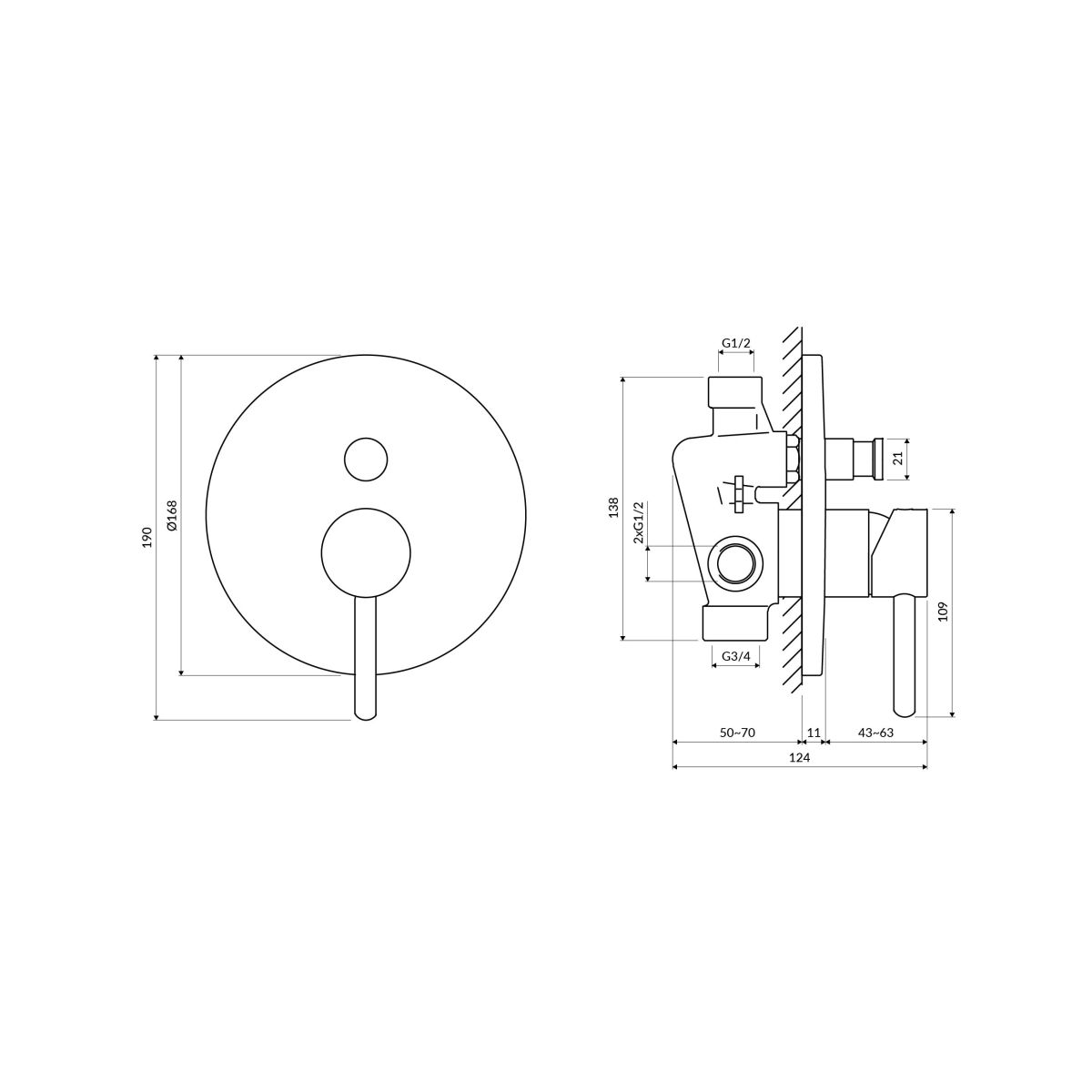 - zwei Eingänge (für Warm- und Kaltwasser): 1/2”, zwei Mischwasserausgänge: 1/2” und 3/4”