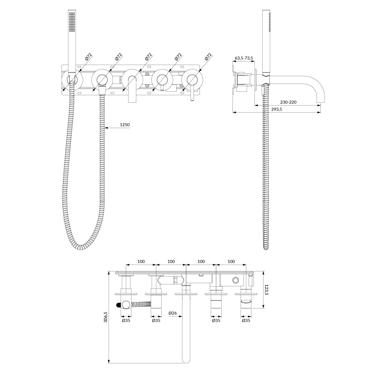 Y | 5-Loch-Unterputz-Wannenarmatur mit langem Auslauf