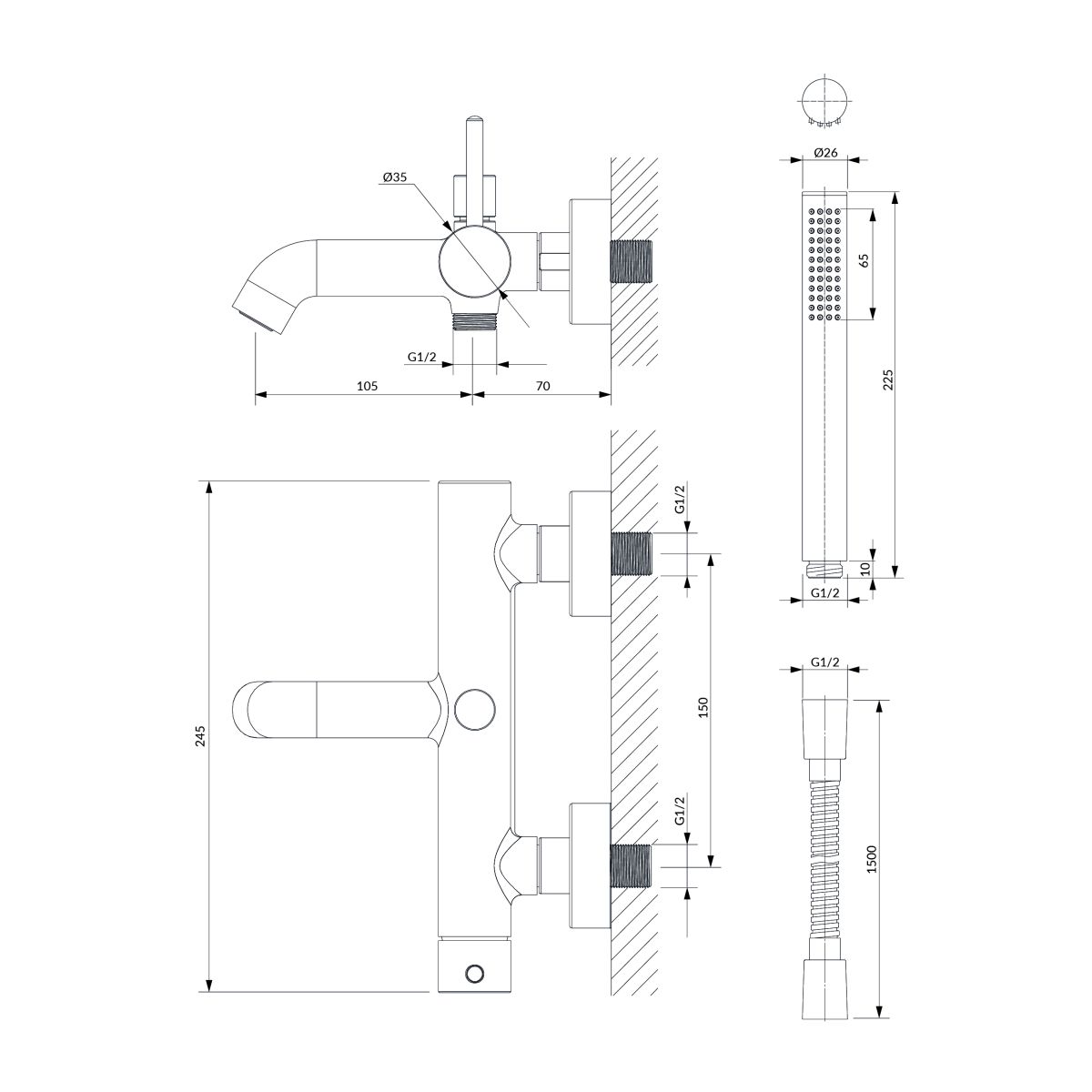 Y | Wannenbatterie mit Duschset