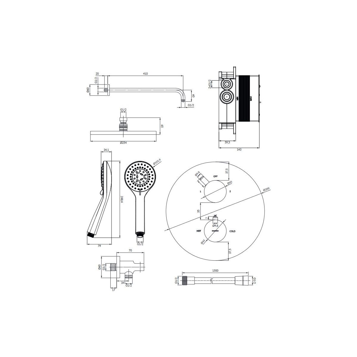 - Inbegriffen: Batterie mit Schalter, Duschkopf, Duschkopf, Duschschlauch, Duscharm, Eckanschluss