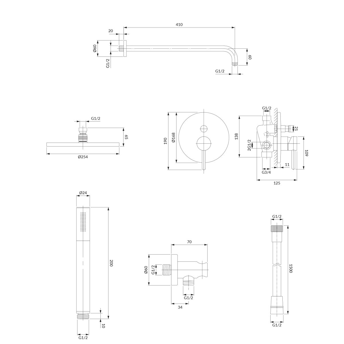 - Inbegriffen: Batterie mit Schalter, Duschkopf, Duschkopf, Duschschlauch, Duscharm, Eckanschluss