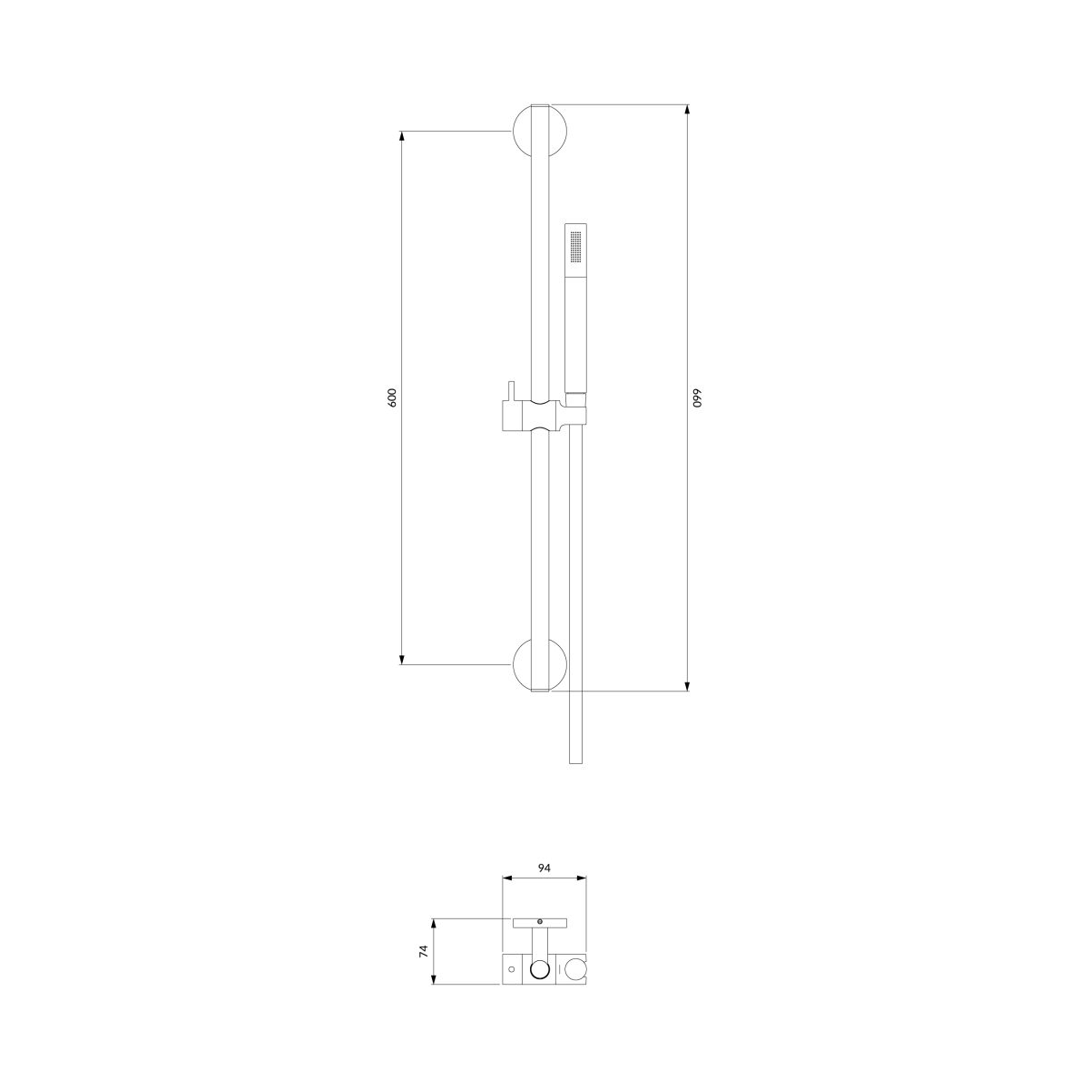 - Messing-Duschstange, Länge: 66 cm, Befestigungsabstand: 60 cm
