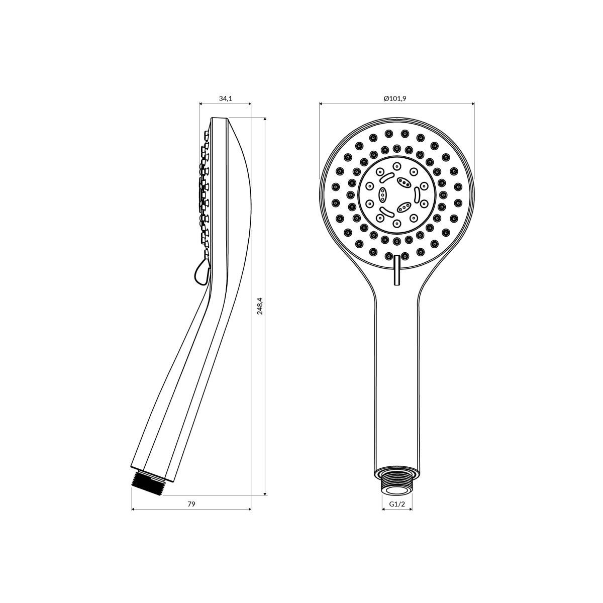- 5 Funktionen, Strahlarten: Massage, Nebel, belüfteter Regen, belüftete Massage, belüfteter Nebel